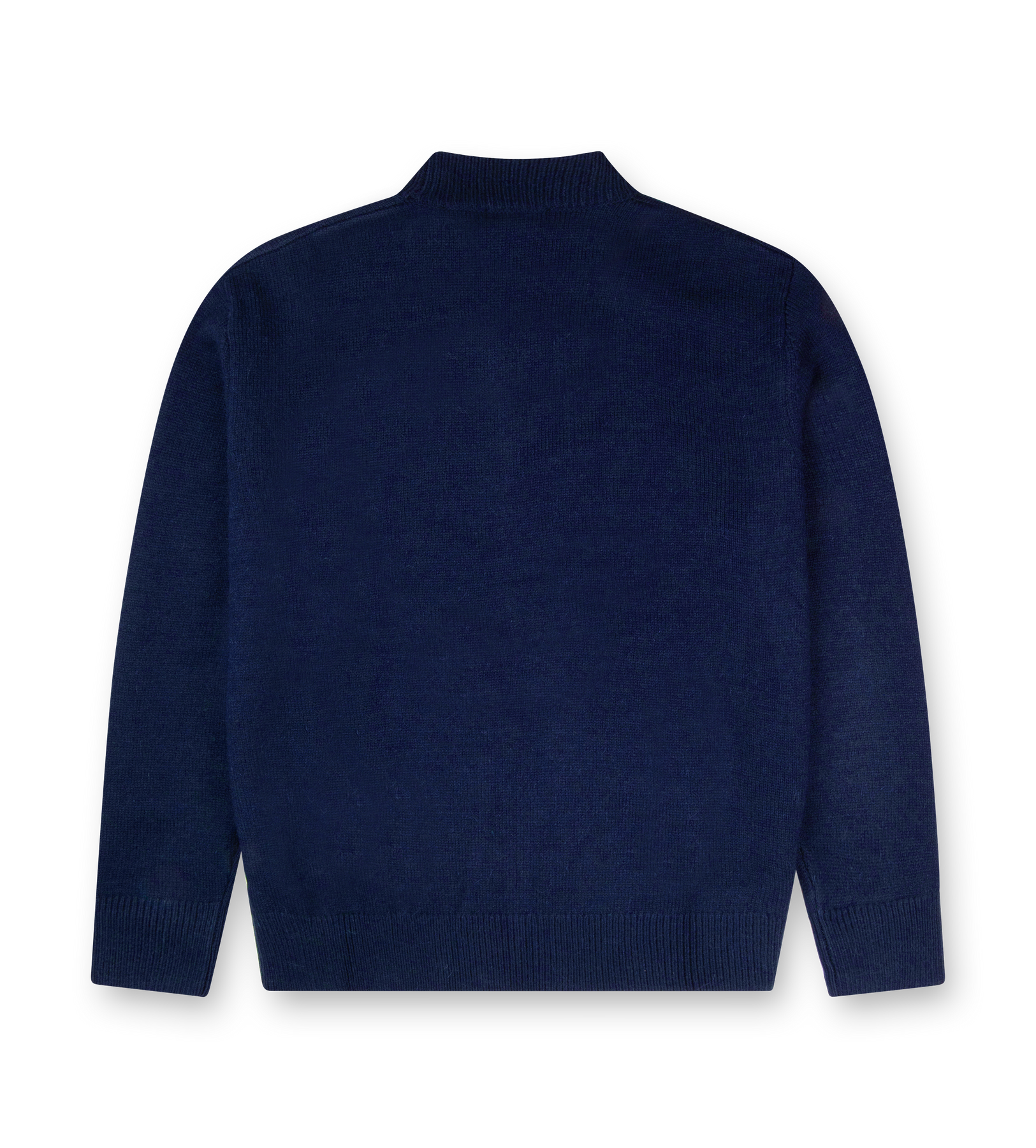Branding comes through with a jacquard logo at the wearer’s left side, while ribbed cuffs and hem provide a structured finish. The marine blue and white palette gives the knit a versatile, modern edge, making it a strong addition to any layered look.