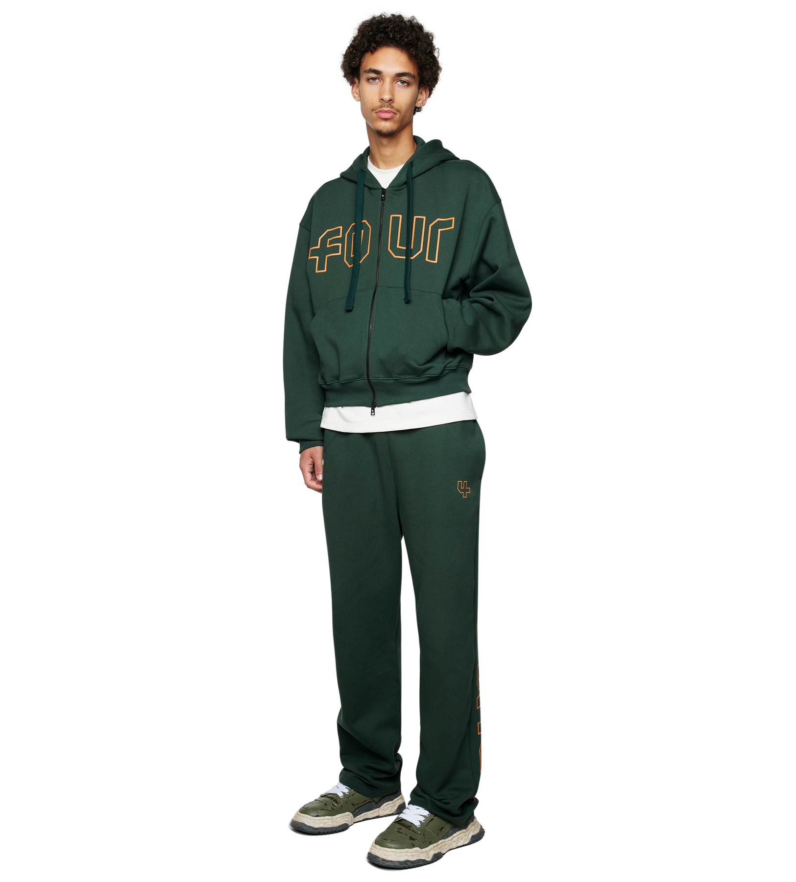 The FOUR Outline Straight-Leg Pants in Deep Forest with Dusty Orange detailing offer a relaxed, everyday option with premium finish. Made from soft yet structured cotton-blend fleece, these pants feature a straight-leg fit and tonal logo embroidery on the front thigh and another vertical in the back of the opposite leg.